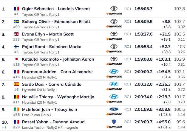 „Olen väga nautinud seda heitlus Oliveriga ja üldse oli tänased pärastlõunased tingimused puhtamad, kui hommikul, mis lubasid meil teha piiri peal sõitu. Vahe on väga väike ja ees ei oota lihtne Super pühapäev. Mu elu ei tehta kunagi lihtsaks, sest olen pidanud heitlema võitude nimel Tänaku, Rovanperä, Neuville ja teistega ning nüüd heitlen endast peaaegu poole noorema Oliveriga. See on parim viis rallit harrastada ja selleks ma olengi endiselt siin,“ sõnas Ogier päeva kokkuvõtteks.